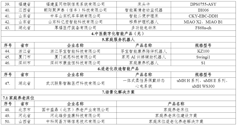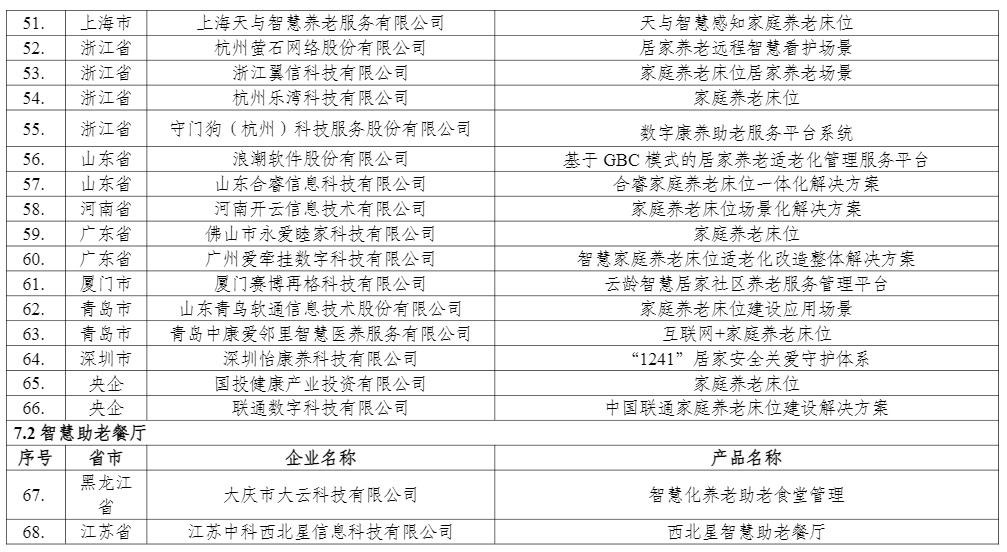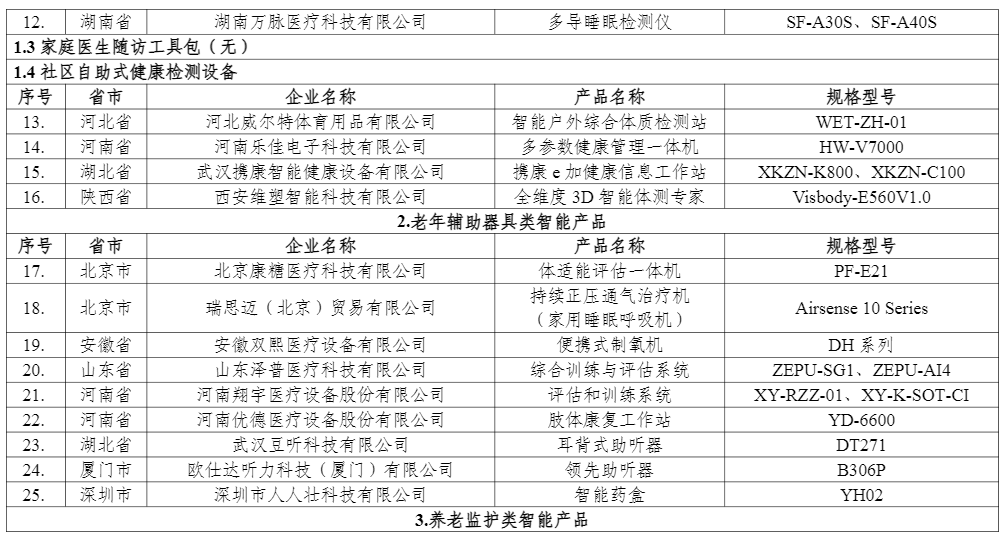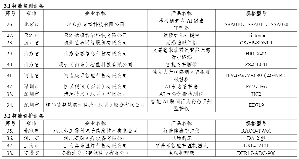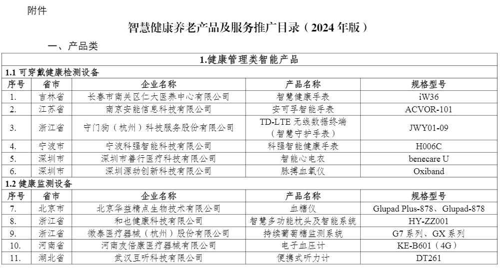 根据《工业和信息化部办公厅 民政部办公厅 国家卫生健康委办公厅关于组织开展2024年智慧健康养老产品及服务推广目录申报工作的通知》(工信厅联电子函〔2024〕334号),经企业自愿申报、地方推荐、专家评审、面向社会公示等程序,确定了《智慧健康养老产品及服务推广目录(2024年版)》,现予以公布。