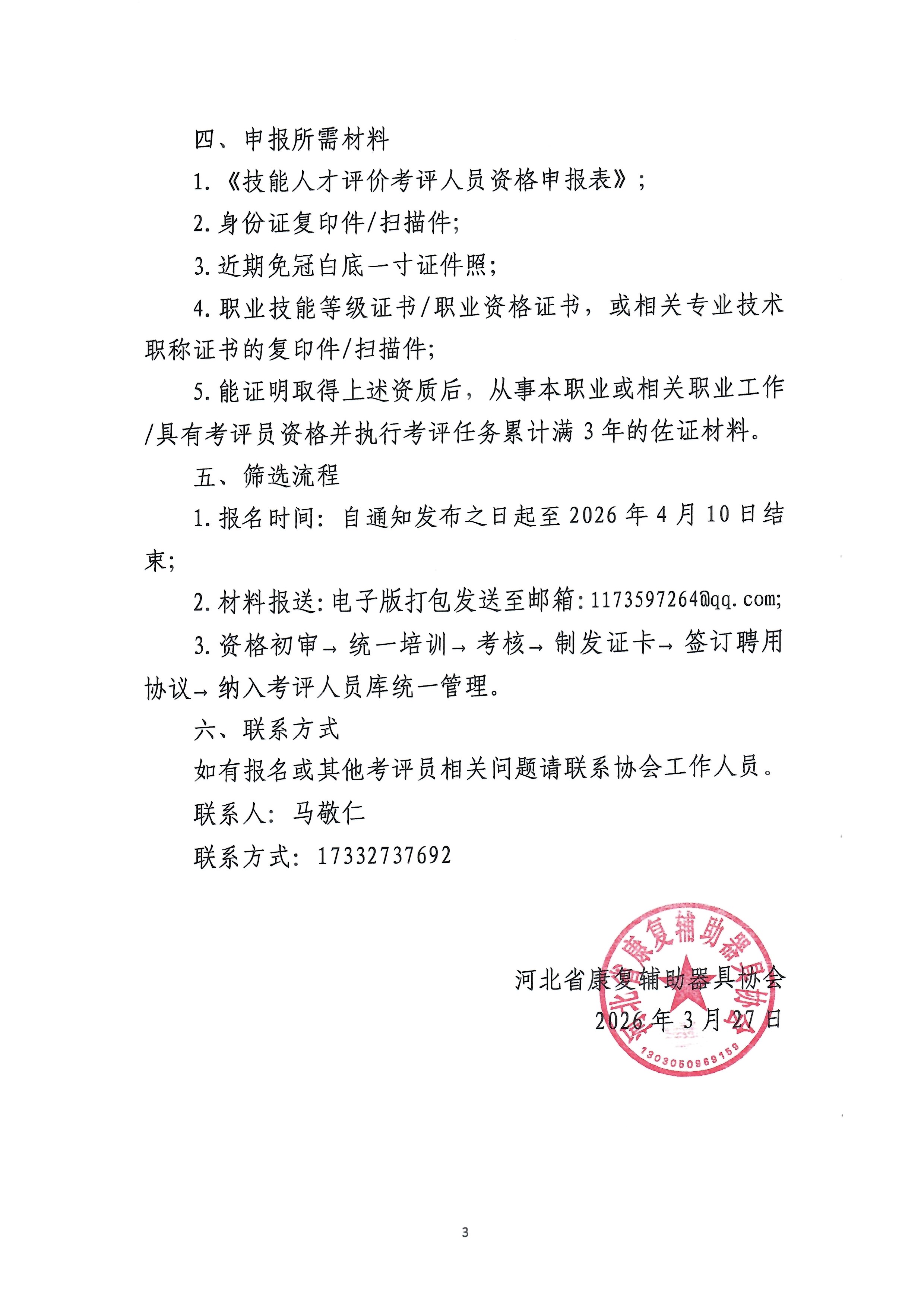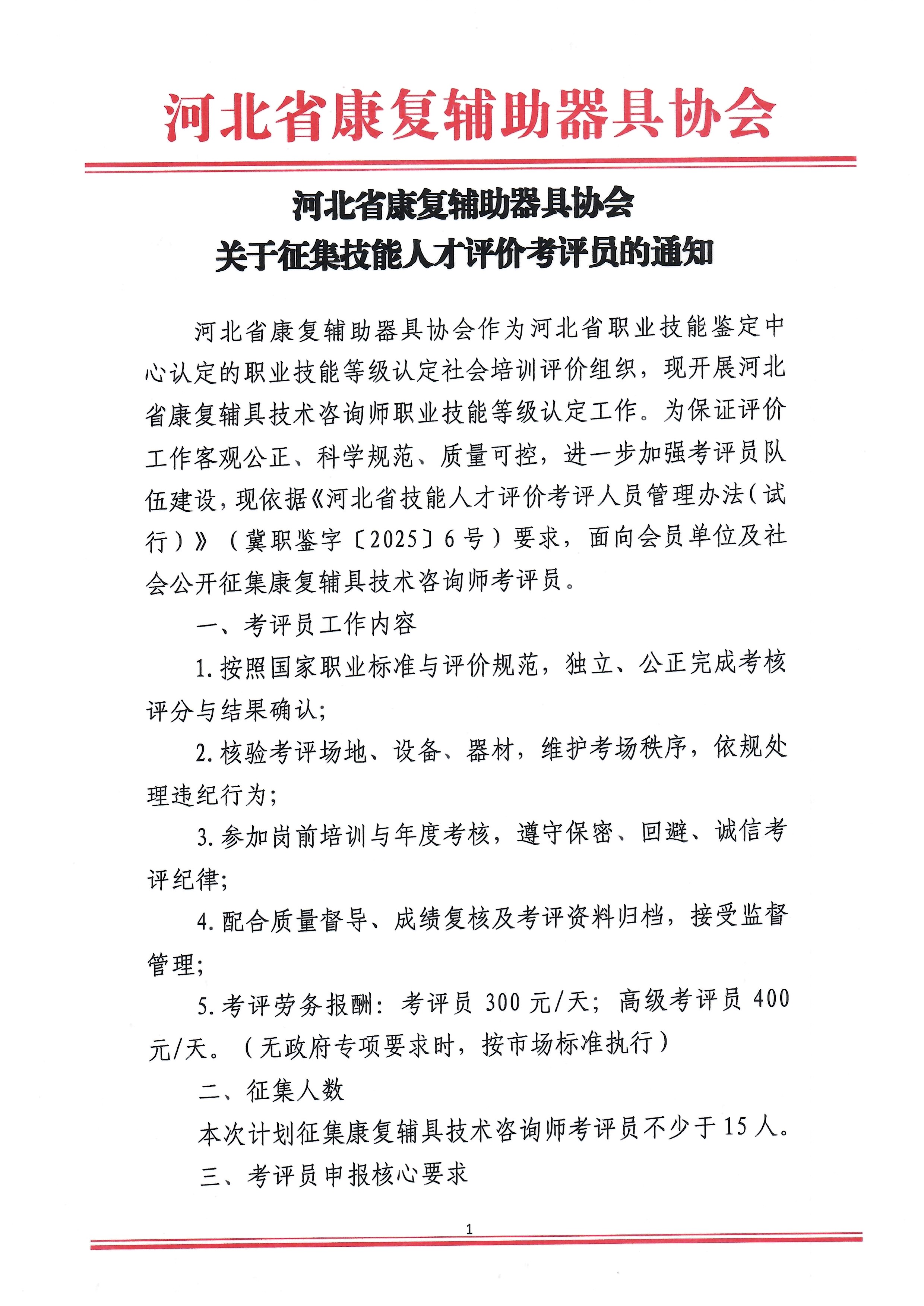关于征集技能人才评价考评员(康复辅具技术咨询师)的通知