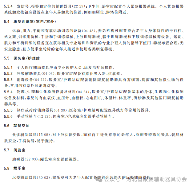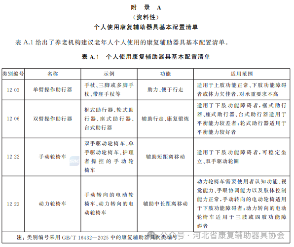 近日,中华人民共和国民政部批准发布《养老机构康复辅助器具基本配置》(GB/T45933—2025),规定了养老机构内个人使用和公用的康复辅助器具基本配置要求,并附录了相应的基本配置清单作参考。老年人由于年龄或自理能力等因素,需要借助相应的康复辅助器具。